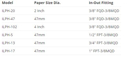 HI-Q - Model ILPH-Series -Paper Only Filter Holders