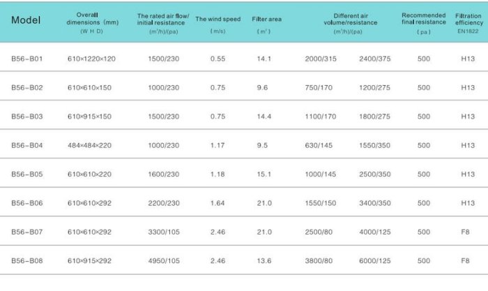 - Each filter includes a label noting tested efficiency,pressure drop,rated airflow;