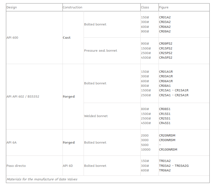 Ringo Válvulas gate valves are supplied with all material types to fulfill all the different combinations of service fluid, design pressure and temperature. Valves can be supplied either forged or casted based on customer specifications. Following materials are under the scope of supply of Ringo: