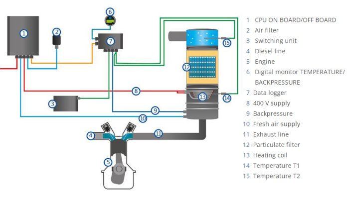 - Continuous particulate filtration independent of machinery operation and exhaust temperatures