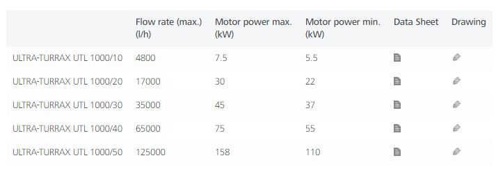 The lower-priced ULTRA-TURRAX UTL 1000 machines are particularly multifunctional and are used for the mixing, dispersing (emulsifying/suspending) and homogenizing of solid and liquid substances up to viscosities of several thousand mPa·s, such as honey, plastic masses and crèmes. The mixing components are fed into the machine at the inlet connection. The materials are mixed, homogenized and then discharged from the machine via the outlet connection. The machine does not have automatic suction, but does have a conveyor height of up to 20 meters.