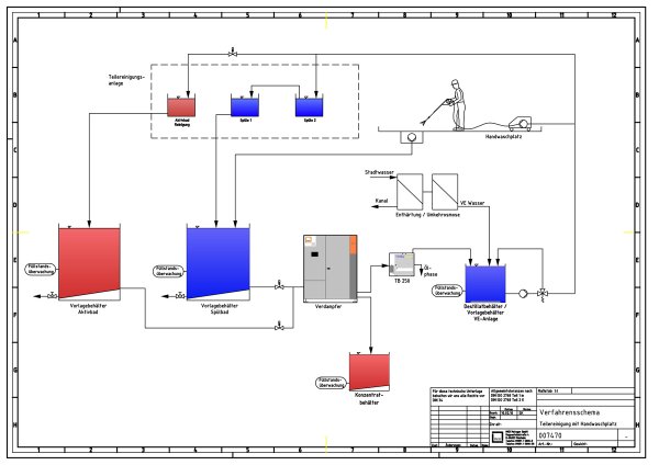 General task requirements for a recycling system for parts cleaning systems: High quality rinsing baths which at the same time minimize operation and disposal costs, Optional : The possibility to prepare active baths.