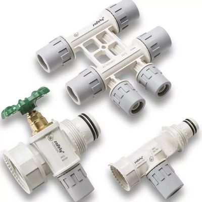Patended fittings system made of synthetic material and caps of PA-M with multilayer pipes. The benefits of Aquatechnik patent in a total metal-free range. Designed to give maximum protection to joints that are to be installed inside and outside of walls.