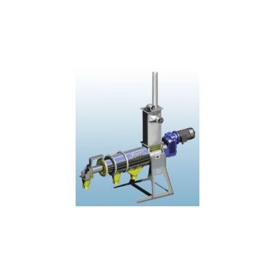 Stainless steel reinforced diaphragm outlet applies self-adjusting counter-pressure producing dryer consistent solids. Patented in various countries.