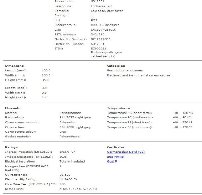 Fibox - Model PC 95/35 LG -PC/ABS Enclosures