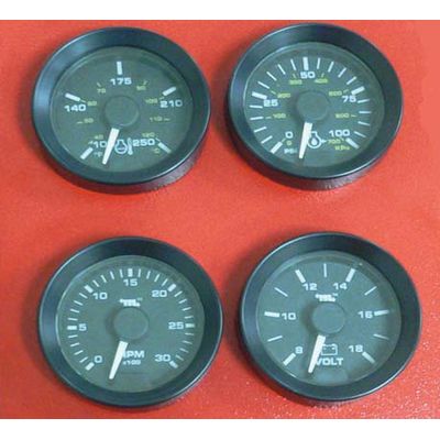 The black dial with white imprint and white pointer with a 90-degree movement make the gauges easy to read.