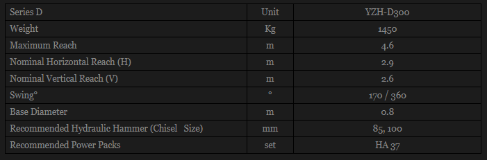 YZH - Model D300 -Pedestal Rockbreaker Booms System for Mines