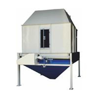 Used to cool pelleted feed. Cooling is done by air cycling inside the cooler. There are 3 stage gratings inside the cooler. One of the gratings is fixed the other 2 stages are moving by gear reducer and pneumatic cyclinder for adjusting the unloading capacity. There are 2 level sensors inside the cooler. When the cooler is full, the unloading of cooler starts.When the cooler is empty, cooling stops.
