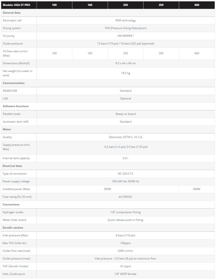 - Hydrogen purity: 99.99999%