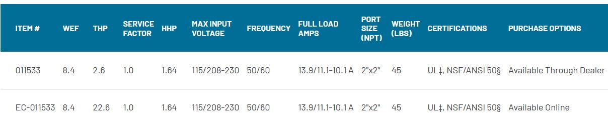 - Superior, drop-in replacement for existing Pentair WhisperFlo pumps