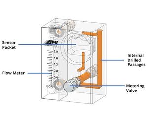 AMI’s patented cell block allows the analyzer to be built with almost no possibility of internal leaking, with minimal volume and with front-panel sensor access. All sample handling components – the flow meter and needle valve – are integrated into a solid metal block. Connections between them are drilled passages. The result is a highly reliable sample system with all necessary components provided. As a result it is practical to accurately calibrate this analyzer on air. Different sensors are available for gases containing CO2 or H2S.