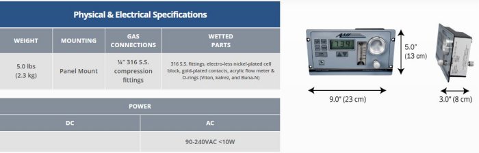 - Unaffected by sample flow rate changes between 0.1 – 5 SCFH.