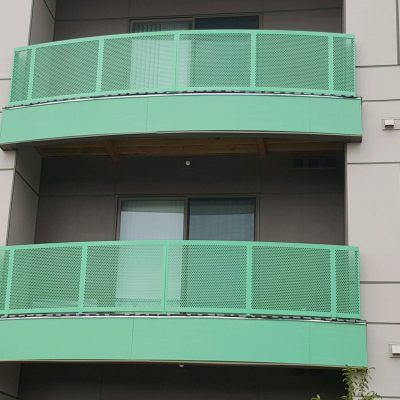 Aluminum is popular for perforated metal guard railing, and especially for outdoor use. It is lightweight and strong. We highly recommend applying a fluoropolymer resin coating or anodizing for best results. We arrange this process with one of our trusted suppliers, so the railings are ready to be installed as they arrive on site with no further finishing.