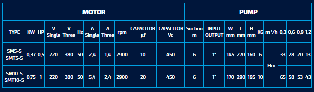 Sumak - Model SM5-S -Peripheral Hot Water Centrifugal Pumps