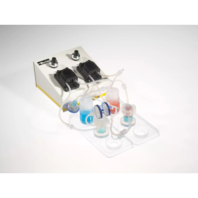 Designed especially to work with Quasi Vivo®, has two independent channels, each with Vernier dials. Both pump heads provide fine control of the flow rate at low ranges, which is ideal for use with Quasi Vivo® system. The pump functions safely within a CO2 incubator, and the compact, lightweight design makes it easy to handle and easy to set up alongside the Quasi Vivo® system.