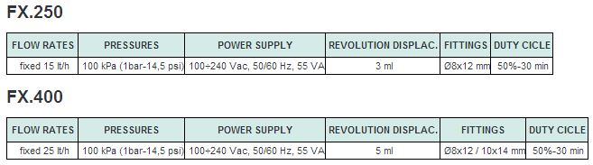 Flow rate up to 400 ml/min. Flow rate reduction max 10%, 10÷100 lt dosed. Suitable for high viscous liquids (2500 mpa.s liquid viscosity with 8x12 tubes). Long life hose 1000 lt for compatible liquids. Modular construction for multiple pairing. IP65 in protection degree. Inexpensive and practical installation. Possibility of customization on the pump head (upon request).