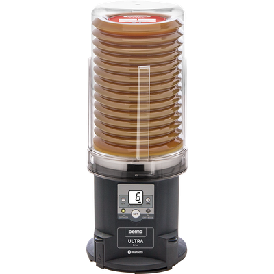 perma ULTRA is a fully automatic lubrication system, independent of temperature and counter pressure with a very precise discharge. With two cartridge sizes, pressure build-up to 50 bar and options of weekly and monthly time settings, perma ULTRA is an extremely versatile and capable lubrication system.