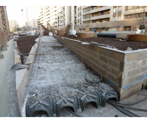 7. Realization of concrete casting, filling previoulsy Atlantis pipes and then covering the formworks till reaching the quote of project.
