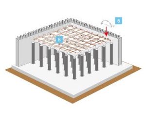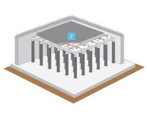 • Minimum use of concrete for level filling thanks to the lowered dome form, which permits maximum resistance with minimum slab thickness.