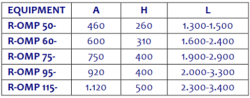 Basic outline and measurements of the R-OMP equipments
