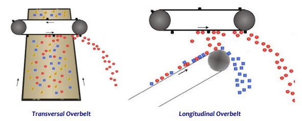 The Overband is located on the conveyor where the processed material circulates. It can be placed here in either transversal or longitudinal direction. In the transversal direction, the Overband can be located at any point along the conveyor.
