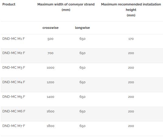 - Max. speed of the conveyor belt 1.5 m/s