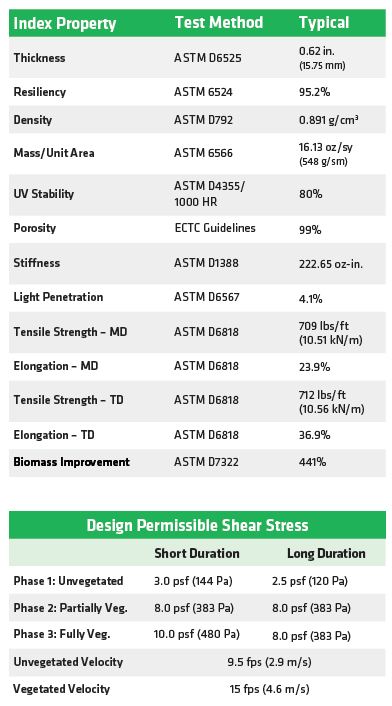 The SC250 shall meet Type 5A, 5B, and 5C specification requirements established by the Erosion Control Technology Council (ECTC) and Federal Highway Administration’s (FHWA) FP-03 Section 713.18.