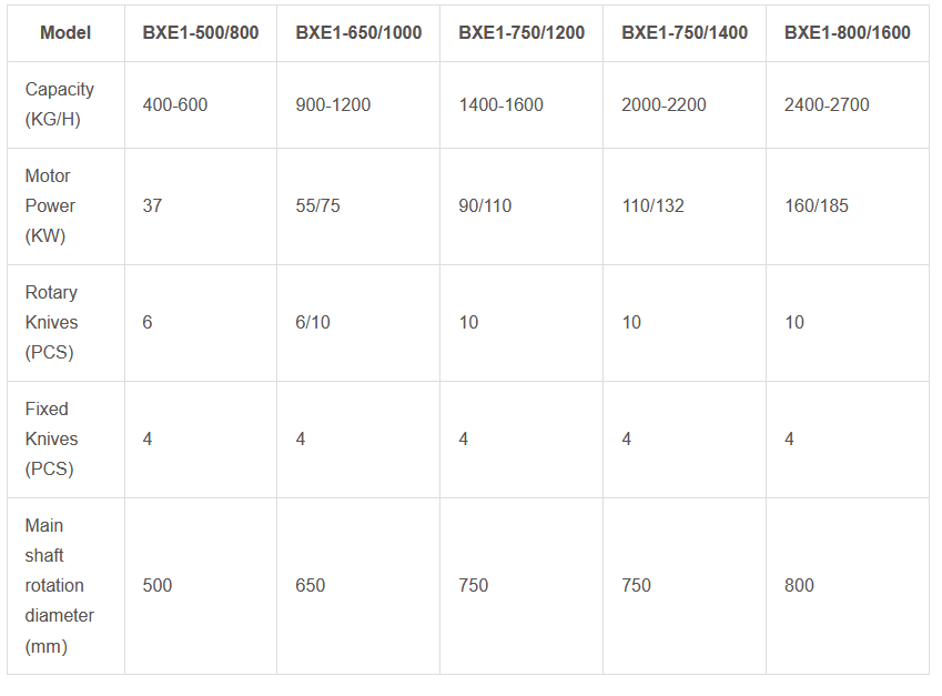 - tress relieved and dynamically balanced, sturdy and smooth running. The rotary knife has a V-shaped installation angle, the cutting shape is X-shaped, and the extension shaft of the rotor can be added with a speed wheel.
