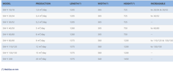 - All the units include feeding pump, sand filter, micrometric filters & PLC.