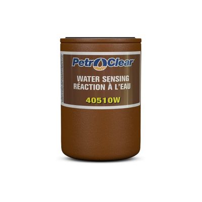 - PetroClear models 40510W and 40530W are particulate and water sensing spin-on filters. These filters are designed to sense water, both free and emulsified, and slow flow as an indicator of the presence of water in neat gasoline and diesel fuels. This filter will not sense nor react to water in Ethanol blended gasoline. (Reaction known as phase separation)