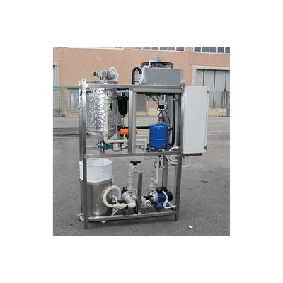 Crio Crystallizers are batch working units, that use the cooling technique to reach the solubility limit, separate the processed solutes, by obtaining solid crystals of waste. The cooling process creates saturation on the surface of the heat exchanger and the crystals are removed through an automatic scraper. The power used to cool the solution is supplied by a refrigeration system.