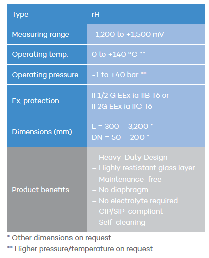 The rH probes are available in rod design with different lengths.