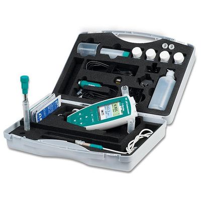 Portable two-channel pH/conductivity measuring instrument for parallel measurement of pH/mV/conductivity/TDS/salinity and temperature. You will be optimally equipped for measurements outdoors with this battery-operated measuring instrument.