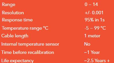 This is a high quality pH measuring sensor. Suitable for measure wastewater, surface water, drinking water or any kind of water between 0-14 pH. This sensor has industrial versions with temperature or temperature and ORP measure. Sensors can be ordered separately or as part of the Sensors2Net wireless data collection and transmission system.