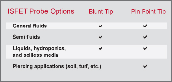 Quality pH meters and ISFET probes for glass-free pH measurement. Well suited for the research community, education, agriculture, horticulture, bioscience, turf, and more!
