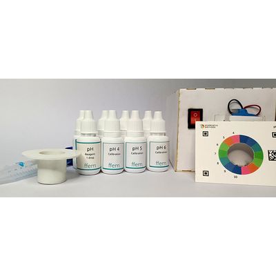 The ffem pH test kit is designed for rapid assessment of pH levels in water using a colorimetric test with a pH indicator. The reagent generates a color shift in the water sample, which then can be analyzed either using the ffem match Android application or visually via a color card for semi-quantitative results. For precise functioning, users must first calibrate their Android devices, with calibration standards provided within the kit. While this method offers a reasonably accurate means of determining pH, it is not a substitute for certified laboratory tests when determining water safety. The kit includes important chemical reagents, necessitating road shipments that may take 15 to 30 days based on the location. It is important to note that distilled water is required for dilution and calibration, but is not included in the kit.BIS standards for water limits pH to between 6 and 9.