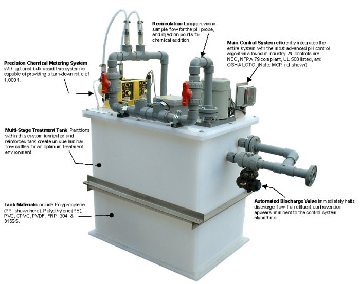All of our lab neutralization systems are supplied as complete "turnkey" packages. Prior to shipping all plumbing and electrical connections are complete and the pH system undergoes extensive burn in testing in our QC area including a wet / hydro test.