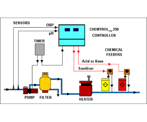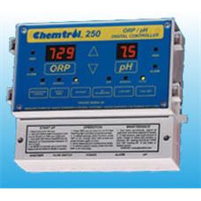 The CHEMTROL® 250 is a microprocessor-based digital controller designed to maintain both sanitizer ORP (oxidation-reduction potential or Redox) and water pH in high-end residential pools, small commercial pools and spas and light industrial applications.