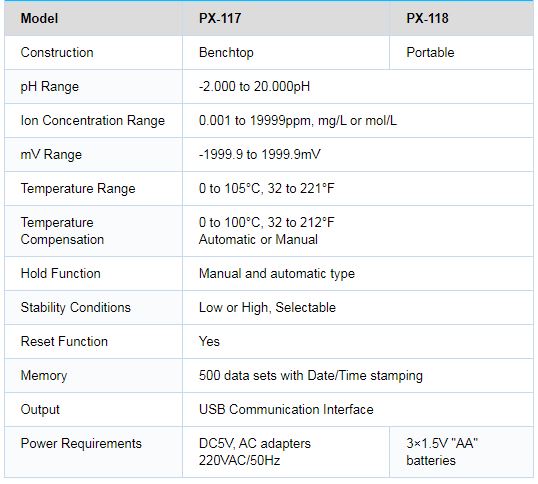 Panomex - Model PX-117 and PX-118 -pH ORP Ion Temperature Meter
