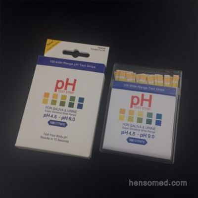 pH Test Strips are used for test pH value in urine and saliva specimen, test range 0-14. The pH of the Urine or Saliva indicates how the body is working to maintain the proper pH of the blood. The urine reveals the alkaline building (anabolic) and acid tearing down (catabolic) cycles. The pH of urine indicates the efforts of body via the kidneys, adrenals, lungs and gonads to regulate body pH balance through the buffer salts and hormones.