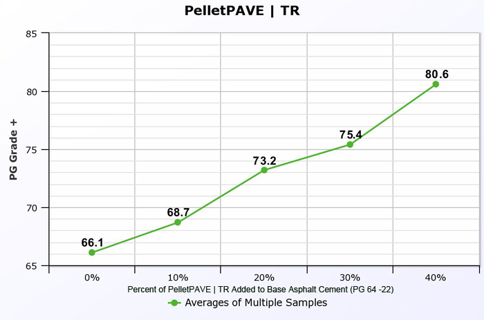 Environmentally Friendly - Cost Effective Pelleted Rubberized Binder. PelletPAVE - TR is used as an alternative for terminal blended type rubber modified binders. This product is a specifically formulated PG 64 -22 binder with SBS polymer and 12% - 15% of a fine ground tire rubber powder. It is typically used to enhance the performance of dense graded mixes.