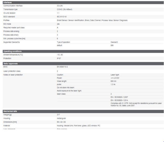 ifm - Model O1D120 -Photoelectric Distance Sensor