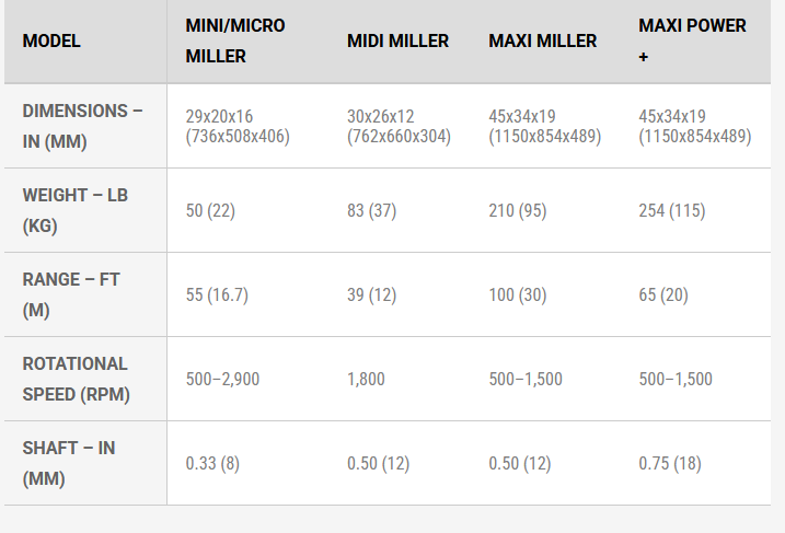 The most popular model, the Maxi-Miller is an efficient powerhouse that features a high-performing electric motor delivering the most torque downhole. This unit features a safety clutch and includes an impressive 110′ of 1/2″ cable and is suitable for drain cleaning, pipe cutting or powering the Smart Cutter and Twisters inside diameters 3.00–8.00″. An adapter for 1/3″ shaft is available for 2.00″ drains. The Maxi-Miller has a push/pull system and glides for maneuvering stairs and includes a locking system that keeps the shaft steady during transportation.