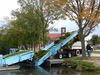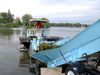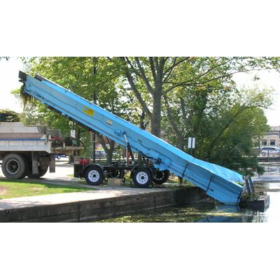 Offloading Conveyors serve the Weed Harvesters, Transports, and Trash Hunters as an unloading link between land and water. The harvested weeds and trash are emptied into the Shore Conveyor or Pier Conveyor, which elevates the load up into a waiting dump truck or dumpster for disposal.