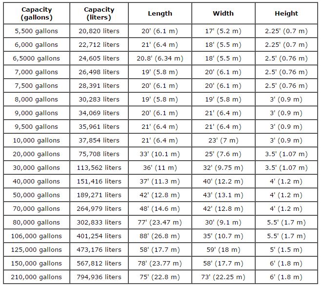 Check out our Cistern Liners. Made from the same reliable fabric as these storage units, liners are available in custom sizes to match these dimensions and storage requirements of your existing tank.