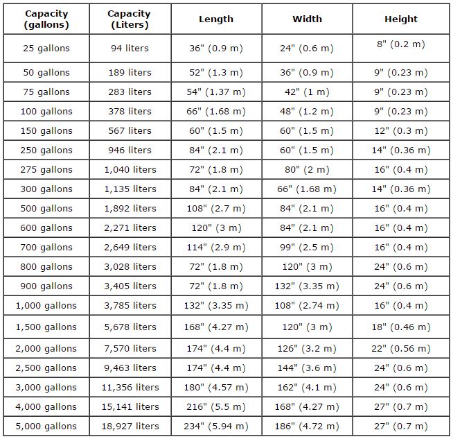 For sizing information view our Small Pillow Tank Sizes or Large Pillow Tank Sizes.