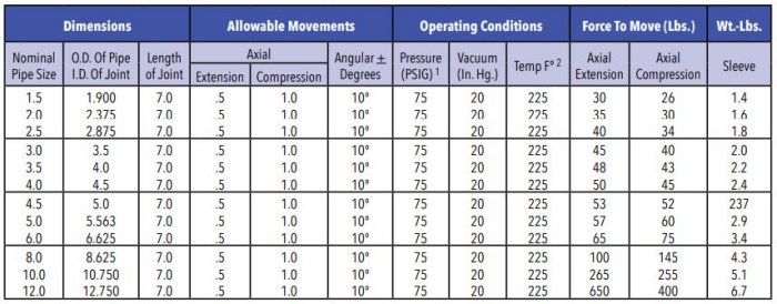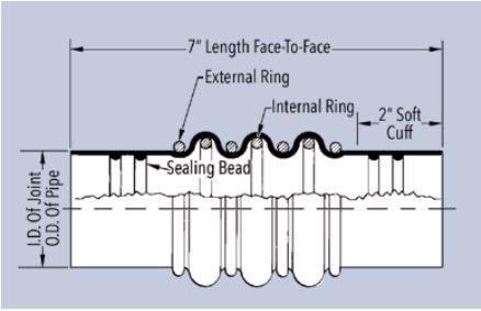Construction of Sleeve Type Pipe Connectors: The Series 450 Sleeve Type Connectors are constructed of neoprene rubber and reinforced with impregnated woven nylon. Sealing beads are molded on the interior of the sleeve and provide extra sealing action for the clamping area. Internal reinforcing rings prevent deformation of the connector during surge or temporary negative pressure conditions. The outer reinforcement rings are provided to add external reinforcement.