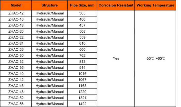 ZHAC series of Pipe External Alignment Clamps can be used for pipe diameter within 12-56 inches (305-1422 mm).
