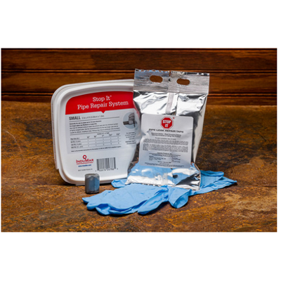 - The STOP IT® Pipe Repair System consists of a knitted, fiberglass tape coated with special urethane resins that are water-activated to change from a wet adhesive tape to a hard urethane plastic in 30 minutes. No tools and no hot work needed to get your plant back to full capacity quickly.