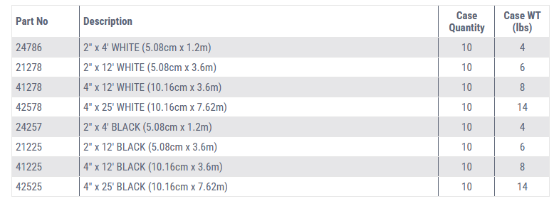 - Temperature/Heat Resistance: From -20°F up to 250°F (-29°C to 121ºC) – continuous. From 250°F to 500° F (121°C to 260°C) – temporary exposures. If possible, the pipe should be at ambient temperature before application.